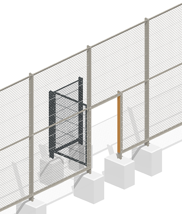 Solidos-Türelement, farbig markiert: Drahtzaun, horizontale Anschlussprofile, Spanndraht